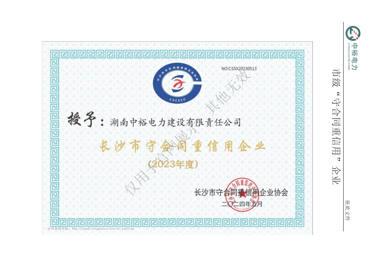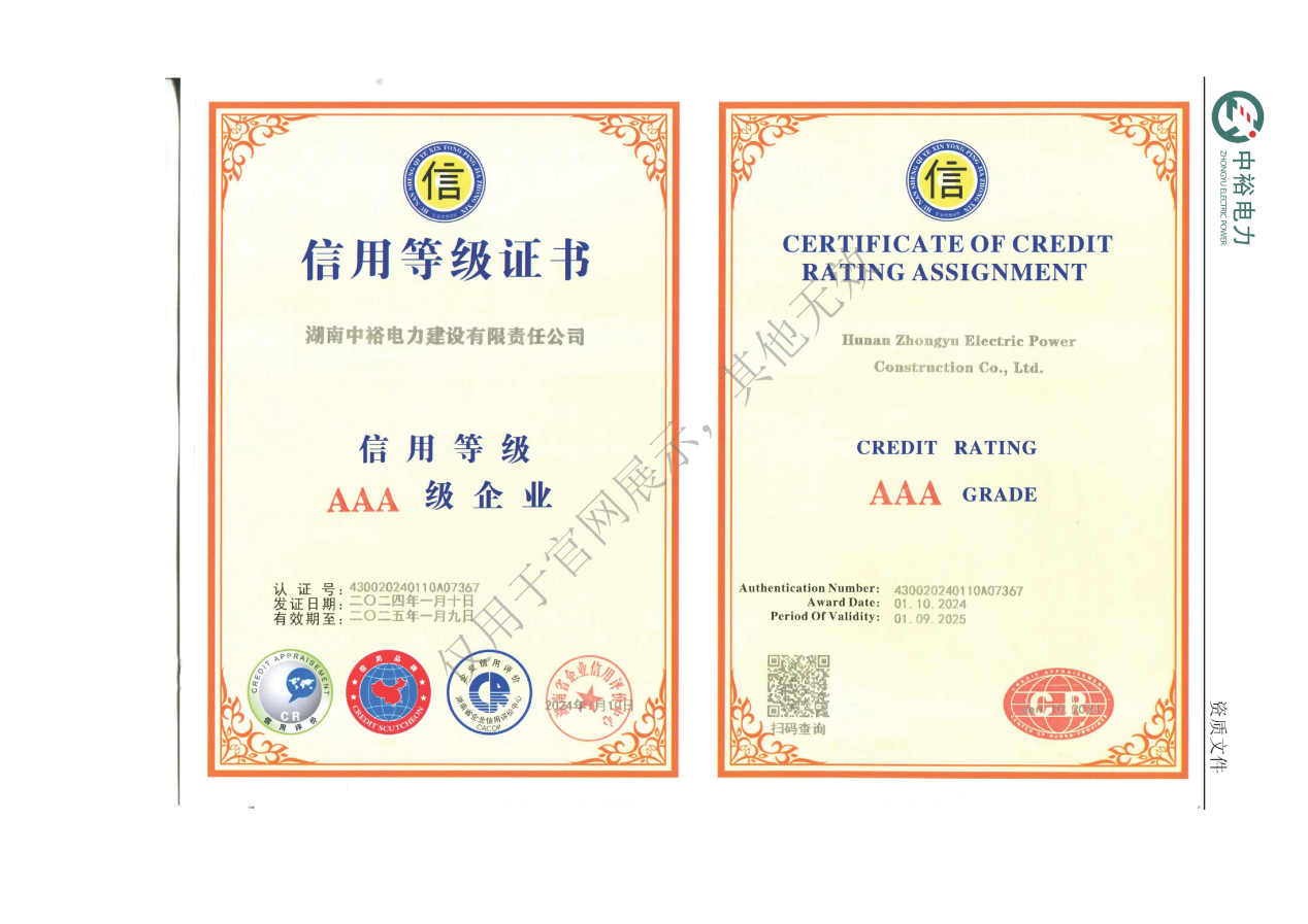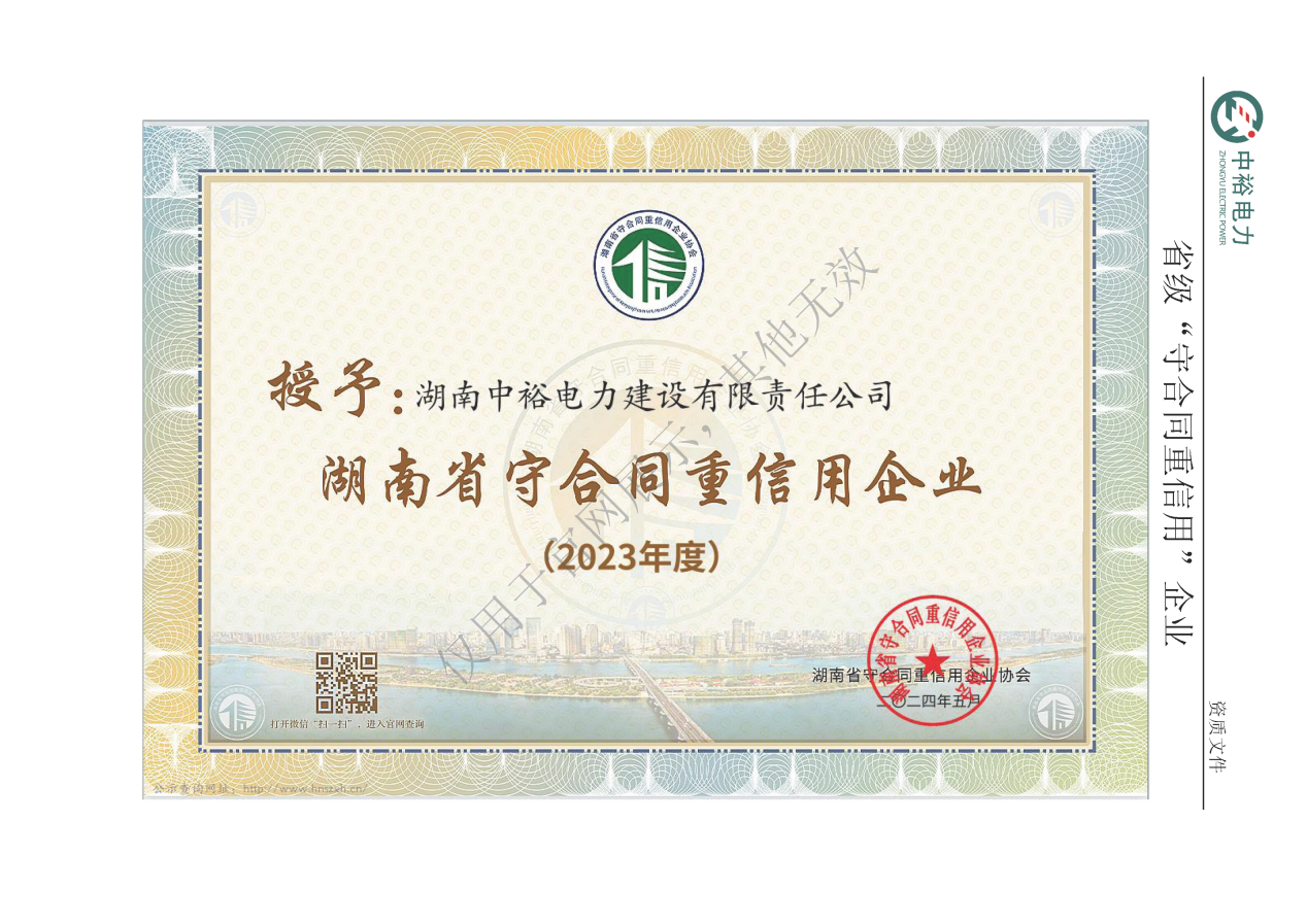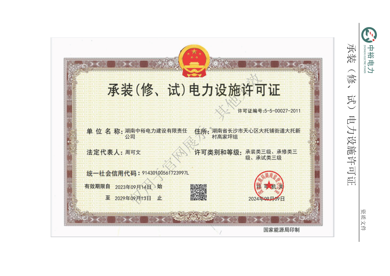 湖南中裕电力建设有限责任公司是一家专业与国家电网、南方电网公司从事电力工程总承包、电力产品研发、用电服务为一体的综合型企业。公司拥有专业固定技术人员、管理人员90多人。